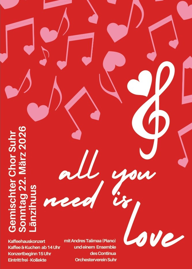 Nach dem gelungenen Adventskonzert zusammen mit der Suhrer Musig freute sich der Gemischte Chor Suhr auf das nächste Highlight: das Kaffeehauskonzert «All you need is love».